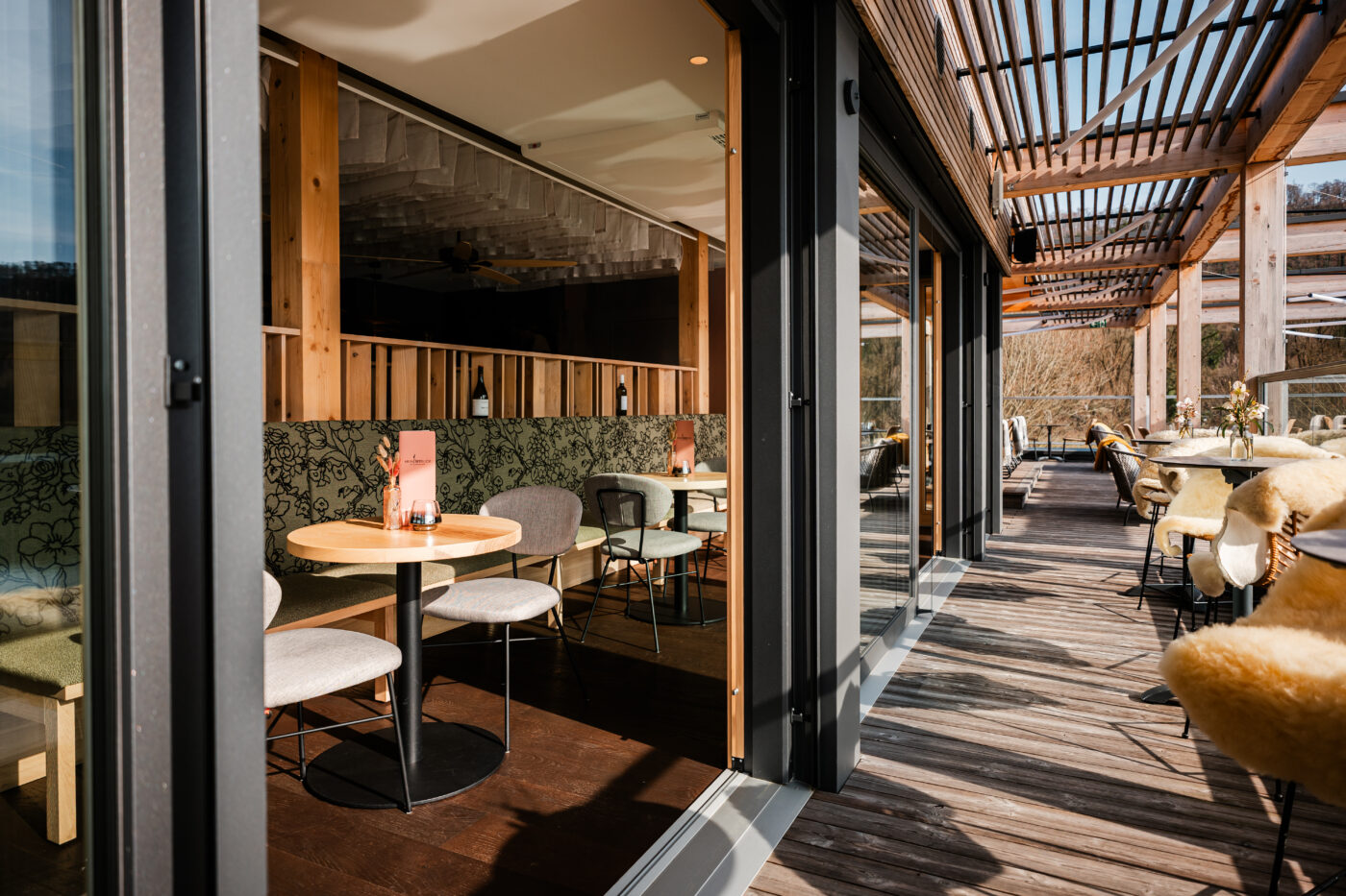 Unsere Bar begeistert mit modernem Ambiente und traumhafter Dachterrasse direkt über dem See. Lehne dich zurück, genieße die besondere Atmosphäre und lasse deinen Blick entspannt über das Wasser schweifen. Bei uns erwarten dich saisonale Cocktails, ausgewählte Weine und regionale Biere.