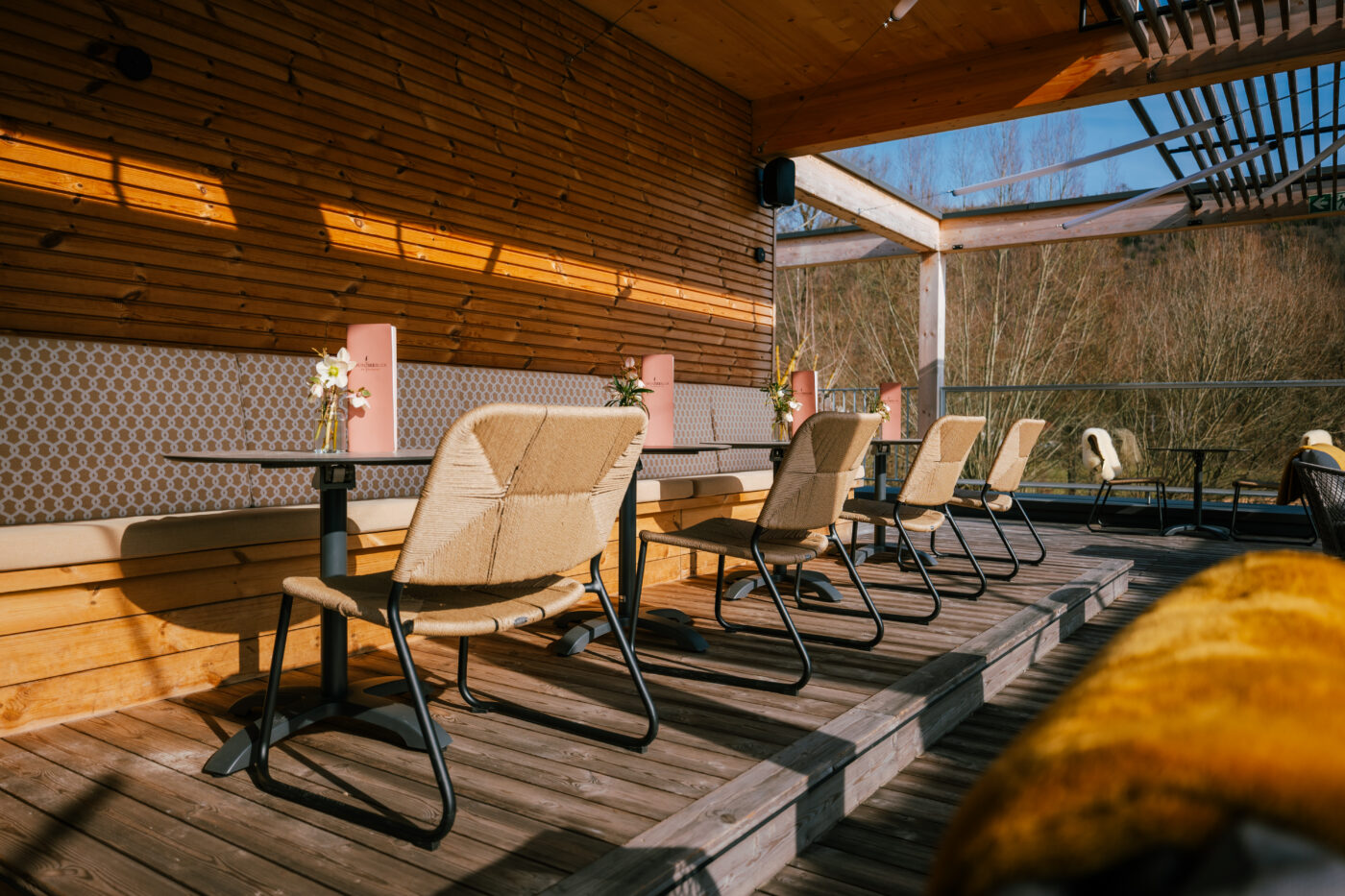 Genieße den atemberaubenden Ausblick von der einzigen Rooftop-Bar im Altmühltal, direkt am idyllischen Kratzmühlsee. Hoch über dem Wasser lädt unsere SEEBAR zum Abschalten und Wohlfühlen ein, während du in entspannter Atmosphäre Platz nimmst und von unserem herzlichen Team bequem am Tisch verwöhnt wirst.