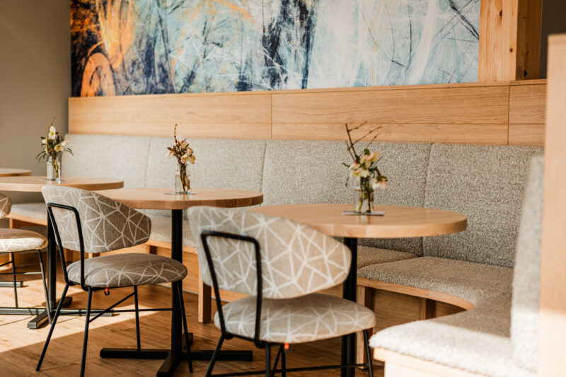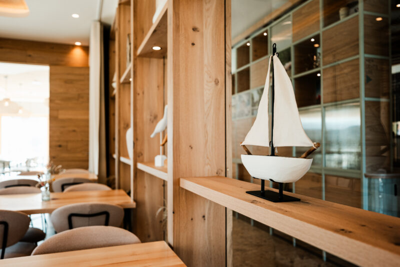 In den warmen Monaten lädt unsere Seeterrasse im Erdgeschoss dazu ein, frische Luft zu tanken und den herrlichen Blick auf den See zu genießen. Bei kühlerem Wetter sorgt der gemütlich gestaltete Innenbereich mit großer Fensterfront für uneingeschränkten Rundumblick und Wohlfühlatmosphäre.
